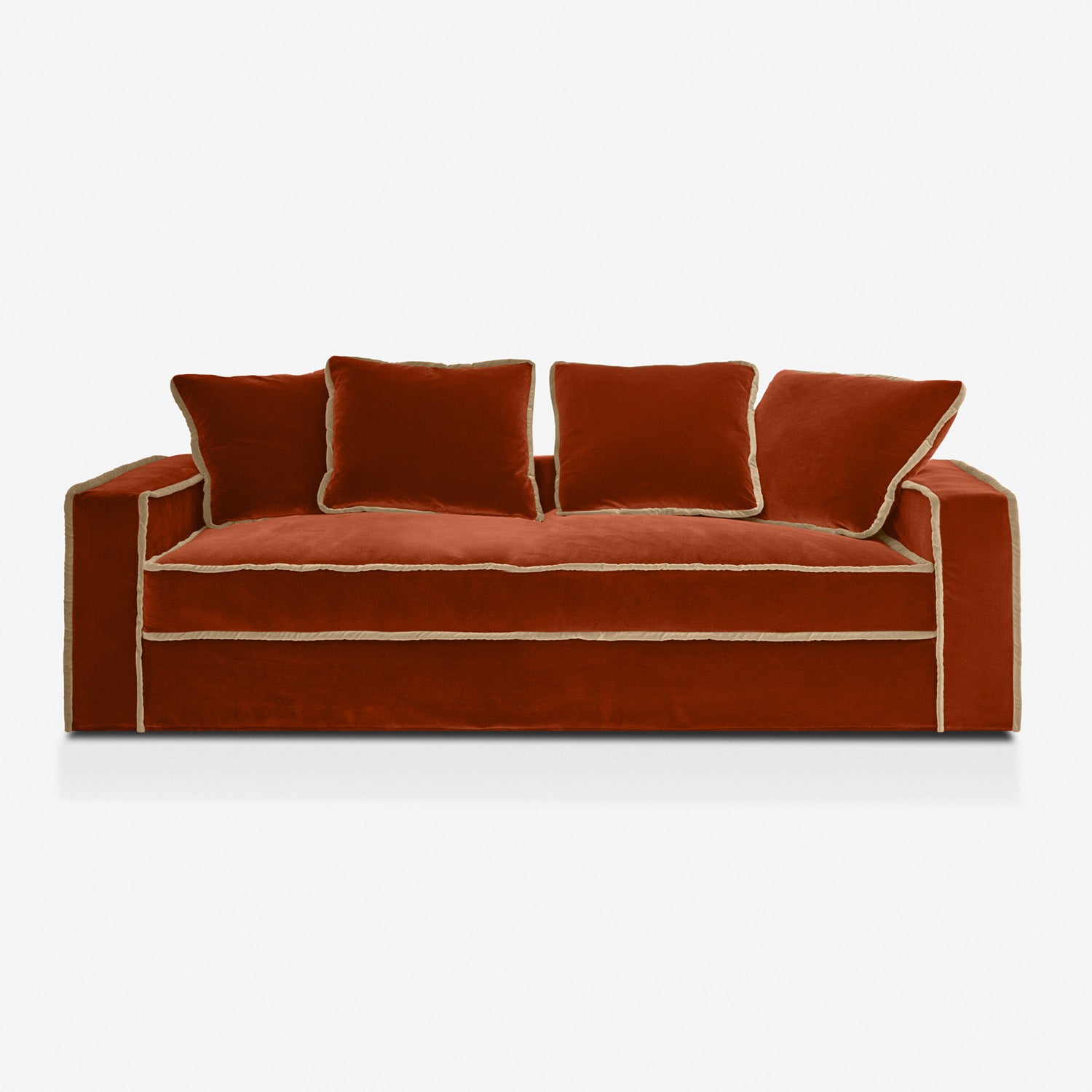 Rafaella 3 seater sofa - Velvet is a Biosofa sofa marketed as a natural-material upholstered design with handmade Italian production. The product page emphasizes natural upholstery/padding materials and customization options for a lower-synthetic interior setup.