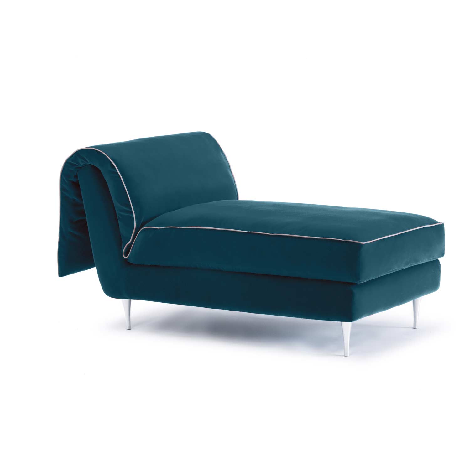 Baco chaise sofa is a Biosofa sofa marketed as a natural-material upholstered design with handmade Italian production. The product page emphasizes natural upholstery/padding materials and customization options for a lower-synthetic interior setup.